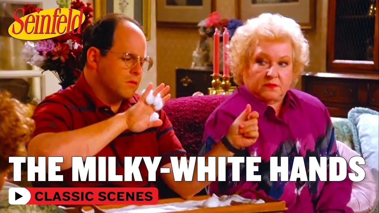 Note: I just realized there are at least four Seinfeld plotlines that kind of, sort of involve "man hands": 1. George becomes a hand model. 2. Jerry dates a woman with "man hands" (his ick). 3. George thinks he's being flipped off by a man whose hand is in a cast. 4. Jerry accidentally breaks Mike's thumbs in a car trunk. I’m digressing.
