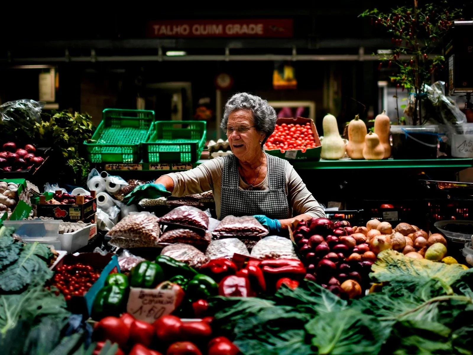 A fruit seller at Dom Pedro market in Coimbra, central Portugal. A lack of access to fresh fruits and vegetables in the U.S. may contribute to Americans shorter lifespan.