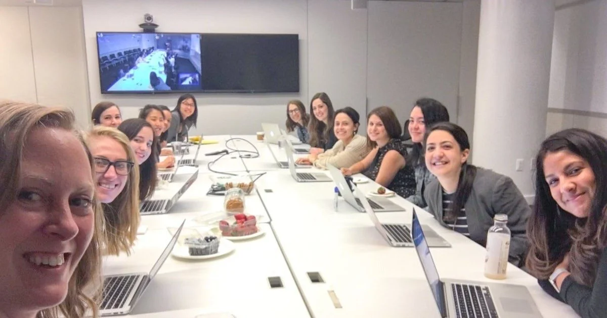 [This was a viral HuffPost image on Twitter where they touted diversity, only to be called out for having an entirely white room. HuffPost wound up firing most of these women to diversify more.]