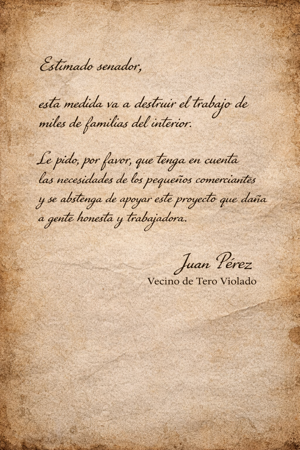 The bill you are proposing will hurt small business owners. bla bla bla.Juan Pérez