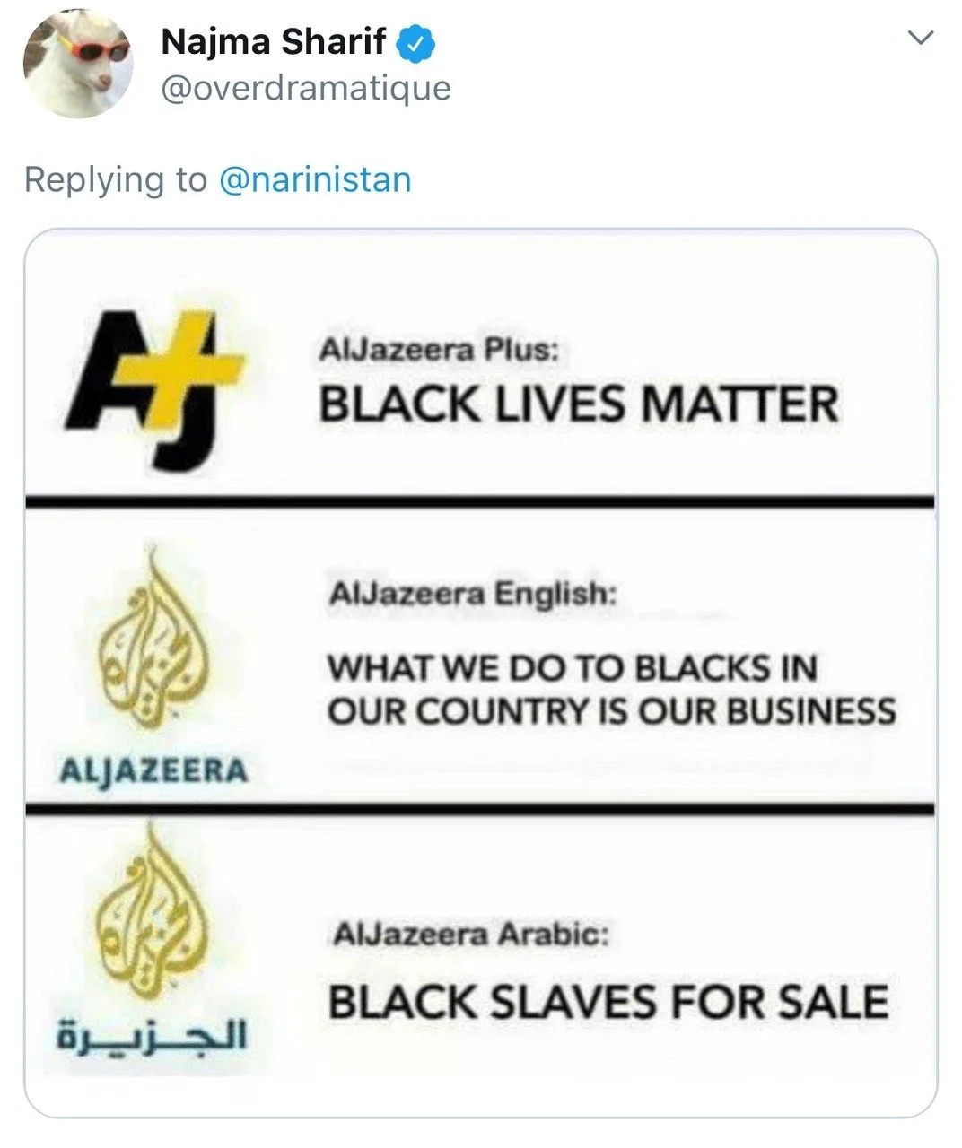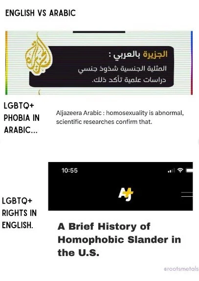 Not a parody. Al Jazeera has completely different coverage of LGBT+ issues when they’re trying to dupe the dumb Americans vs when they’re talking to their Islamist audience in Arabic
