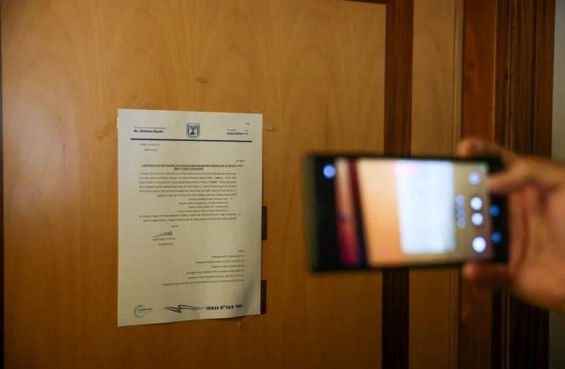 Israel Police raid the Al Jazeera offices in east Jerusalem on May 5, 2024 (credit: Chaim Goldberg/Flash90)