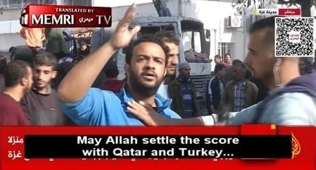 From a video clip at the start of the current war, where the Al Jazeera cameras are shut off as soon as civilians verbally attack H@mas. Qatar harbors the H@mas leaders, Billionaires living in mansions.