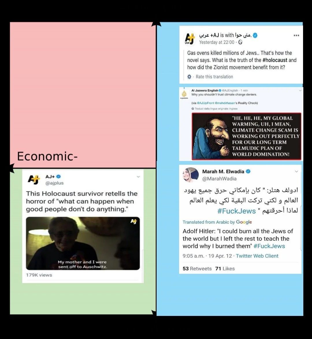 The most well-known affair regarding Holocaust denial by Al Jazeera, more specifically by its “younger” tributary AJ+, is a seven-minute “documentary” published in May 2019, which reportedly claimed that the Holocaust was “different from how the Jews tell it,” promoting it with a tweet reading “Gas ovens killed millions of Jews…So the story says. How true is the #Holocaust and how did the Zionists benefit from it?”